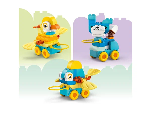 • Конструктор для многочасовой творческой игры: привнесите цвета и безграничное творчество в игры малышей с конструктором LEGO® DUPLO® 3in1 Animals on Wheel.