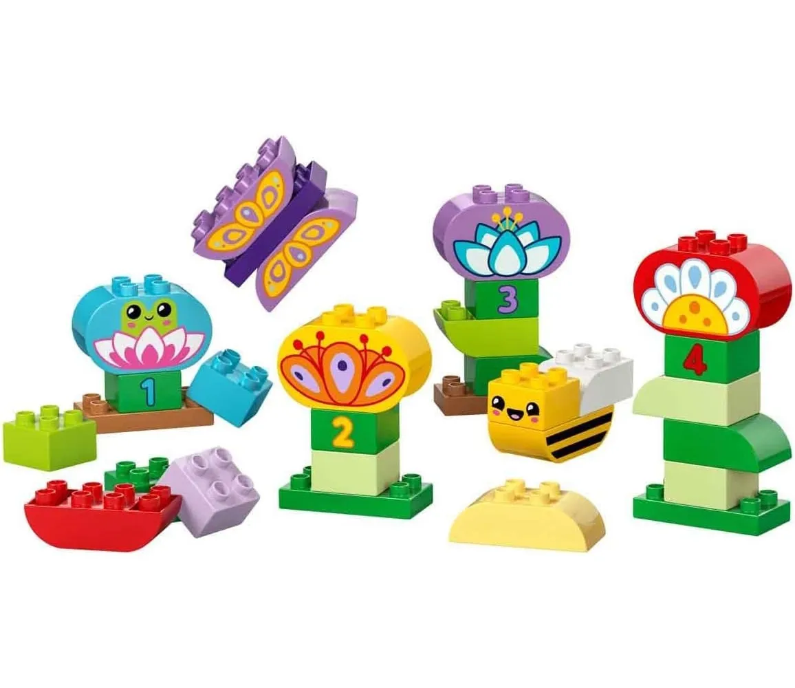Конструктор LEGO Creative Garden & Flowers Stacking Toy адресован самым маленьким детям, которые только начинают познавать окружающий мир и знакомятся с кубиками. С помощью набора малыши смогут собрать яркие цветы, бабочку и пчелу — обитателей сада. Строительные элементы можно использовать для обучения детей сортировке по цветам. В игровой форме конструктор будет развивать мелкую моторику, усидчивость и стимулировать творческое мышление.