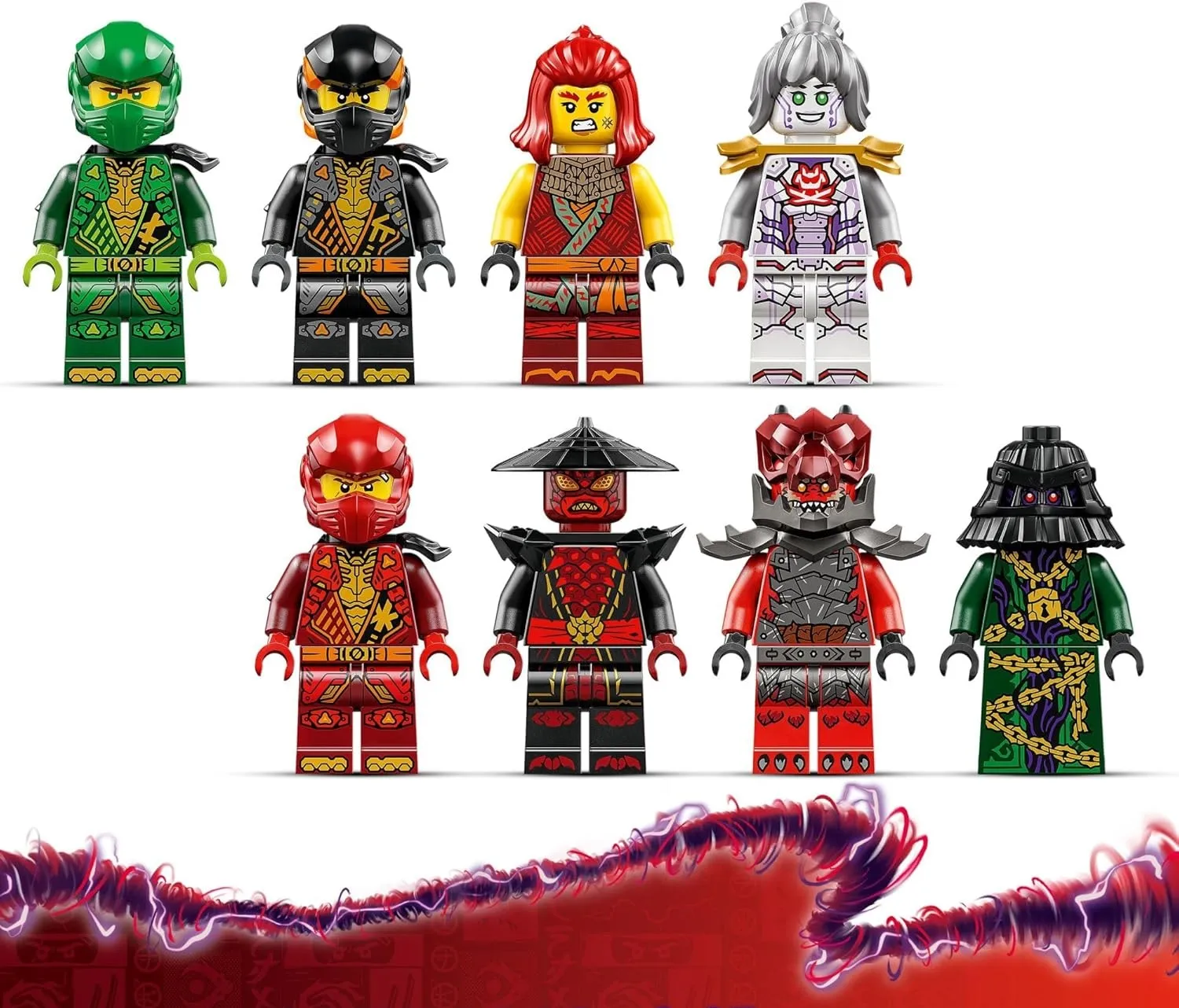 Набор основан на событиях третьего сезона Ninjago Dragons Rising. Дракон может двигать хвостом, ногами, ступнями, головой, шеей, челюстью и когтями, выпускать снаряды и махать крыльями — для этого нужно двигать рычаг на спине. В комплект входит вращающееся транспортное средство Кружитцу (спиннер), в которое можно поместить мини-фигурку и нажать кнопку, чтобы запустить быстрое вращение.