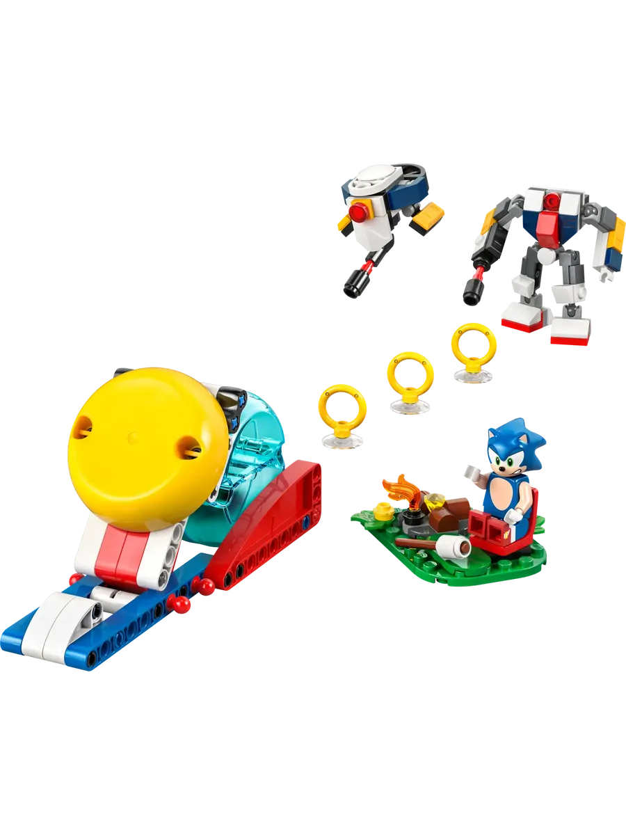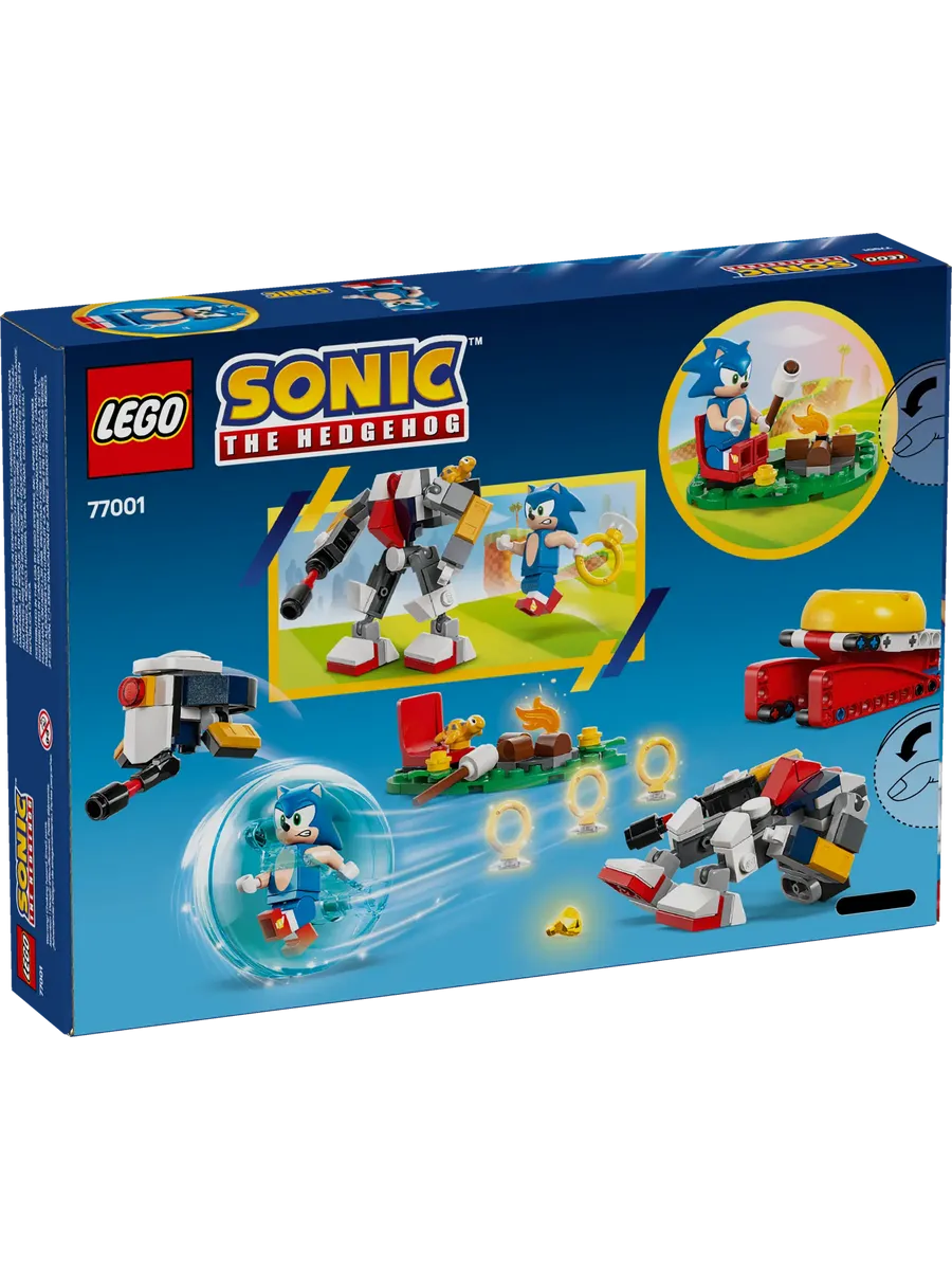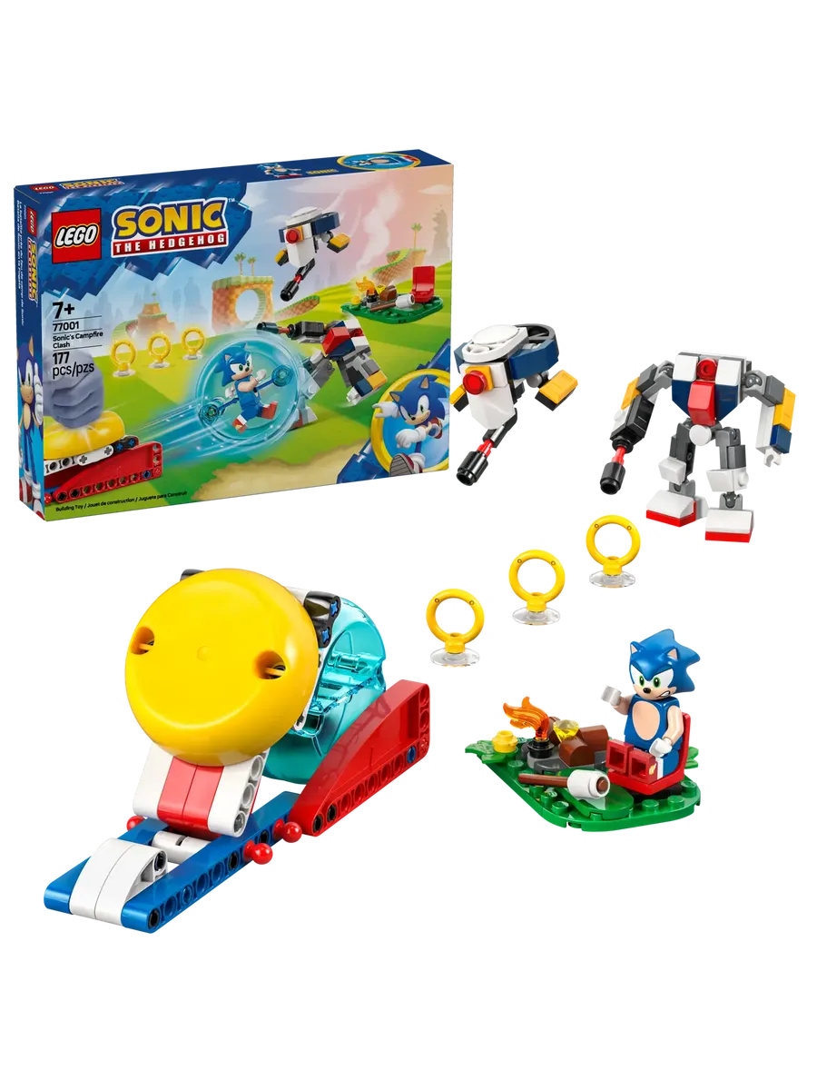 Приключения и веселье ждут поклонников видеоигр в возрасте от 7 лет и старше с этим коллекционным игровым набором LEGO® Sonic «Столкновение Соника у костра» (77001). Эта игрушка LEGO® Sonic the Hedgehog включает в себя модель костра, пусковую установку скоростной сферы и скоростную сферу, а также аксессуары, включая Изумруд Хаоса и 3 золотых кольца. • Увлекательная игрушка для детей: порадуйте фанатов в возрасте от 7 лет и старше этим веселым набором Sonic’s Campfire Clash, который побуждает детей придумывать новые истории с любимыми персонажами из истории Соника. • Коллекционный игровой набор LEGO® Sonic: эта многофункциональная игрушка включает в себя пусковую установку для скоростных сфер, скоростную сферу, зону для костра и 4 фигурки LEGO® Sonic: Соник (Sonic), робот-дрон GUN Beetle, робот GUN Hunter и Токки (Tocky). • Набор на основе видеоигры с функциями: этот конструктор «ЛЕГО» делает экшен и веселье еще более захватывающими благодаря пусковой установке для скоростных сфер, которая запускает скоростную сферу с Соником внутри, приближающуюся к фигуркам роботов. •