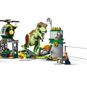 Множество вдохновляющих на игру компонентов — аэропорт с вертолётной площадкой и гаражом, открывающаяся клетка, которую можно перевозить на вертолёте или в багги, и разрушаемая ограда, чтобы разыграть побег динозавра.