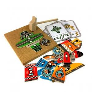 Также игрушки позволят развить глазомер, логическое мышление и аккуратность. В наборе всего 27 деталей, которые позволят каждый раз создавать новые конструкции. В него входят части космических кораблей, молоток, доска, карточки с инструкцией и гвоздики.
